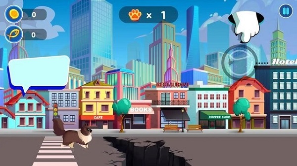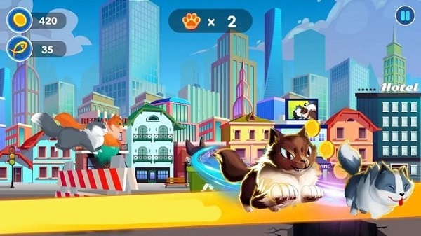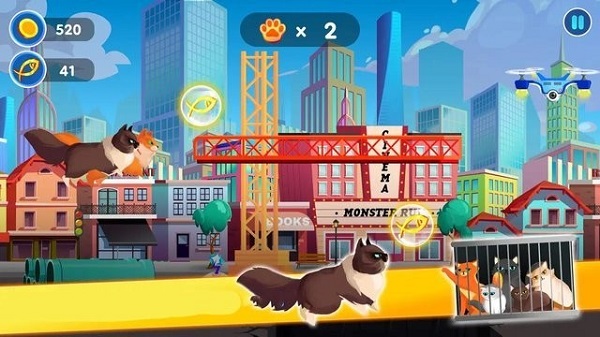 2、控制你的宠物(主要是猫)在被入侵的城市中奔跑,收集所有流浪宠物;