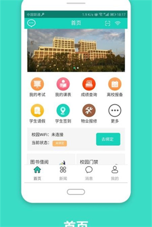 1、为全校师生提供在线服务体验,具备多种校园服务功能;