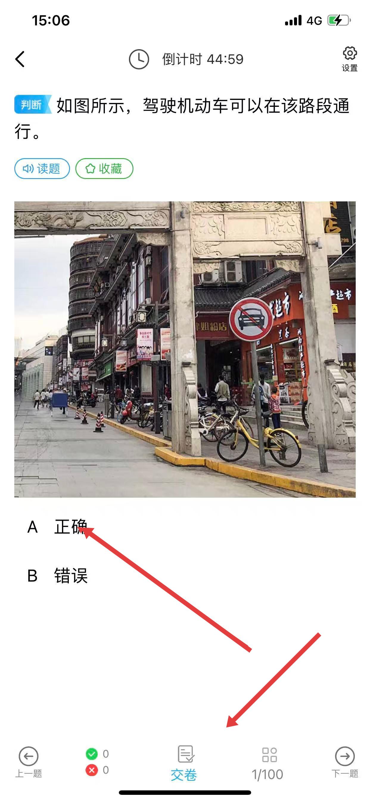 3、进入答题界面,浏览题目并选择答案进行答题,答题完可点击交卷结束考试。