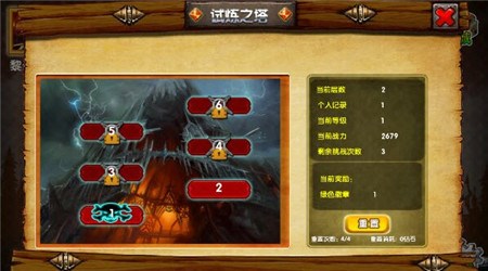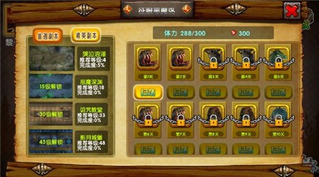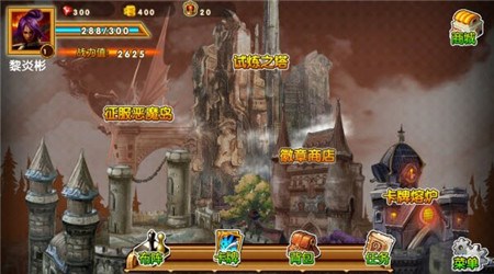点击下方的菜单来查看和解锁英雄!点击上方的征服恶魔岛或者试炼之塔进入战斗场景,选择关卡进入!