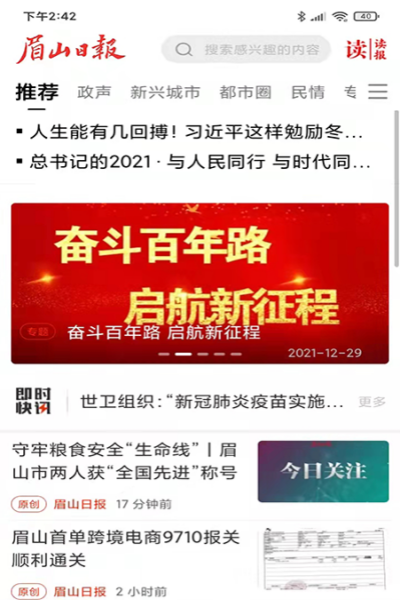 一款是眉山日报在线新闻客户端,功能上就提供了党政、社会、民生在内的多方面服务内容,在这里汇聚了眉山本地的新热门的新闻资讯,众多的服务随心使用。