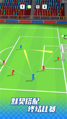 一款街机竞技手机游戏,在游戏中你是一位出色的足球运动员,参加一场又一场比赛,无论在比分多么落后,对面多么强大,你总是能反败为胜,创造奇迹,现在比赛又出现了危机,又到了你展示的时候了,判断角度让足球在天空中划出一道优美的弧线,默契传球,大力射门,将你的威武英姿展示给全世界。