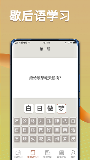 3、有成语模式,让用户学习不再枯燥,更有虚拟有趣的关卡等待用户体验;