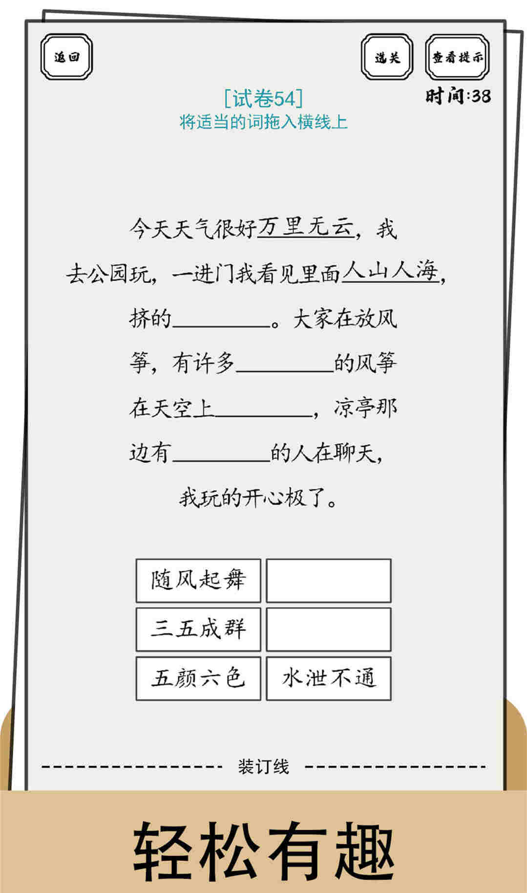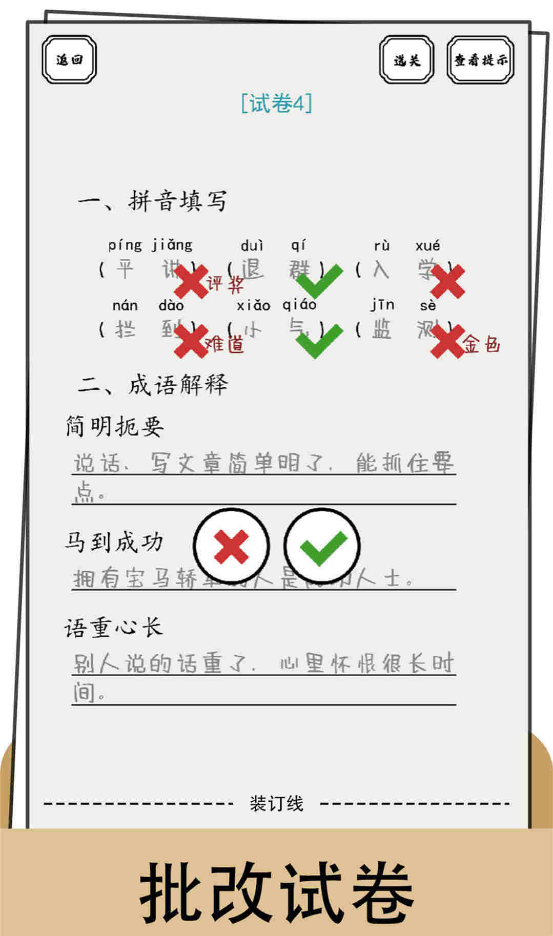 游戏中逼真了现实生活中的试卷题目的游戏画面,非常简约的风格和游戏音效,让玩家有一种身临其境的体验感。