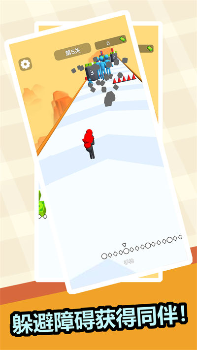 1、收集足够数量的人,玩家在跑酷的过程中会遇到很多的绿色小人,将他们收集起来可以提高武器的等级;