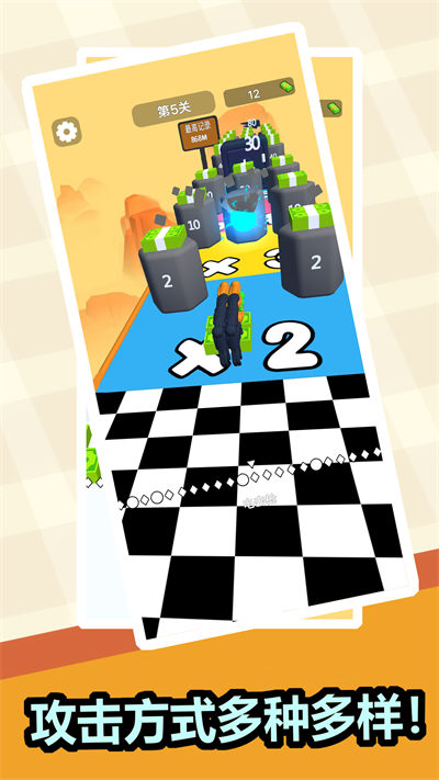 1、新颖的游戏模式,游戏中玩家需要在跑酷的同时收集道路上的人,并在这个过程中使用武器打败前方的敌人,玩起来非常紧张刺激;