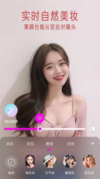 一款在为那些视频通话聊天时用的实时美颜滤镜,适用于各种机型,让大家在视频时也能时刻保持最美的一面,丰富的滤镜提供给大家,自由免费使用,非常实用的软件。