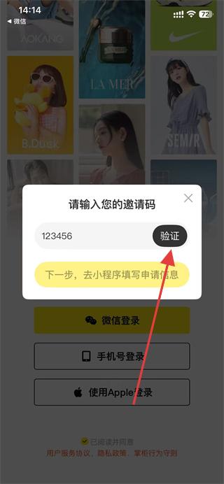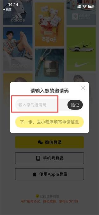 2、在弹窗中点击输入框,填写对应的邀请码。