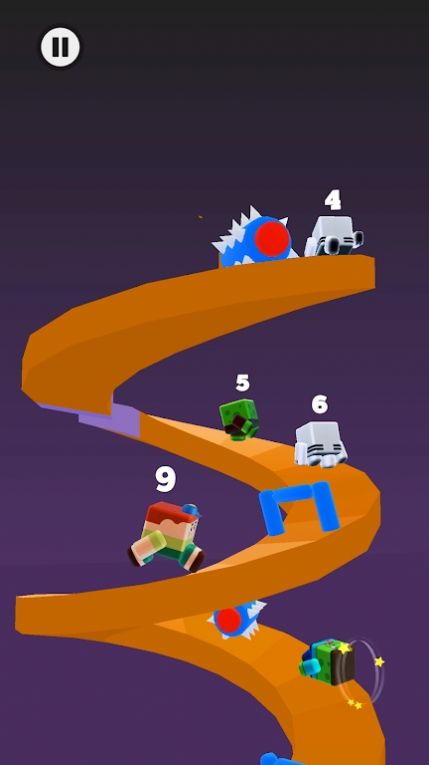 旋梯跑酷游戏是一款休闲的游戏,玩家选择自己的角色进行游玩,关卡有很多的障碍物和陷阱,还有随机的道具,需要我们灵活的进行操作,需要超过所有的敌人,第一个到达终点即可获得胜利,快来游戏里尝试下。