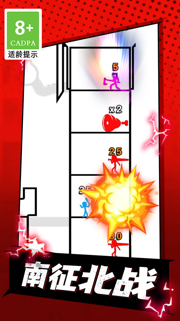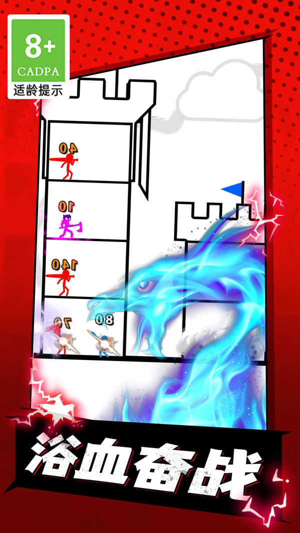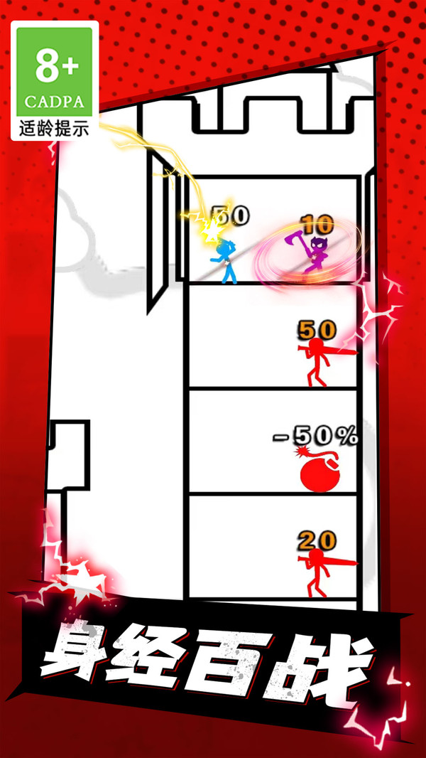 1.这里进行一场史诗级的爬塔闯关,控制火柴人不断决斗。