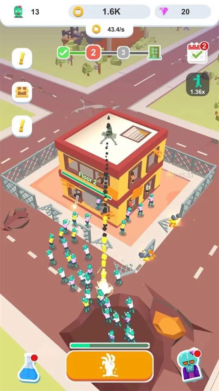 百万僵尸军队是一款充满乐趣的僵尸策略游戏,在游戏中你可以操控僵尸军队攻击世界,在你的面前有一栋充满军人的建筑物,你需要操控你的僵尸抓住它,游戏画风是以卡通风格打造的,游戏中的内容丰富,玩法也是非常的多样化,在游戏中你需要召唤你的僵尸军队,升级僵尸,雇佣特殊的僵尸,建造世界上最强大的僵尸军队,带领自己的僵尸军队参与各种各样的战斗,在战斗中享受无比刺激的游戏体验,随时展开战斗比拼,喜欢的小伙伴们快来下载体验吧。
