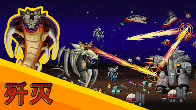 2、像素风格的游戏画面,游戏中的城市和巨龙都是像素的模式,玩家在摧毁城市中的建筑以后会变成很多的像素粒子,看上去非常解压;
