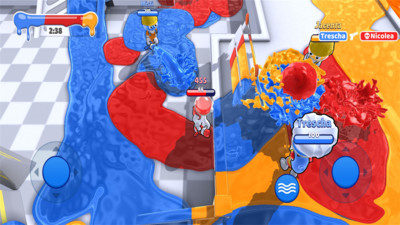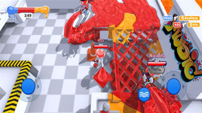 1、精彩刺激的颜料大战,这里的染料没有限制,玩家可以使用自己手中的染料枪尽情战斗,将所有的空白地面都染上颜色;