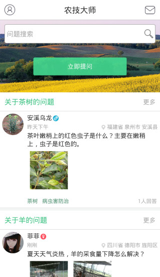 农技大师是一款免费种植养殖问答手机应用。一个问题推送给全国多位知名专家来为您解答,专家来自于全国农业科研教学单位的知名教授、专家、农业管理、技术推广、服务部门的一线基层专家、农业企业和协作组织专家以及农业电商、投资领域专家,为您解答种植、养殖过程中所遇到的各种问题。