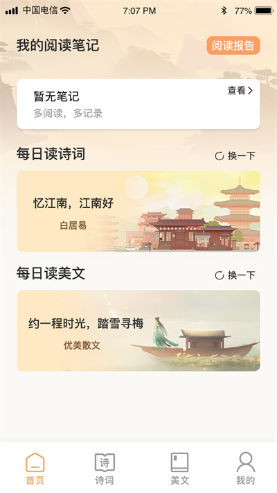 2、每日也会推荐诗词内容,每天背诵一个诗词丰富阅历;