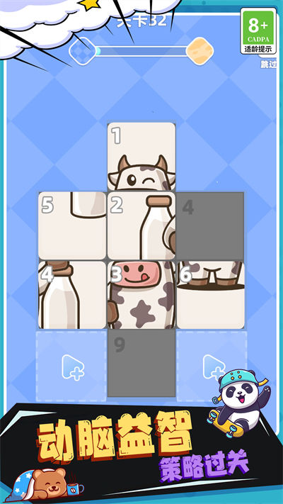 1、观察图片,这些图片都是由一个完整的图案打乱的,玩家需要认真观察,根据一定的内在逻辑进行拼图;