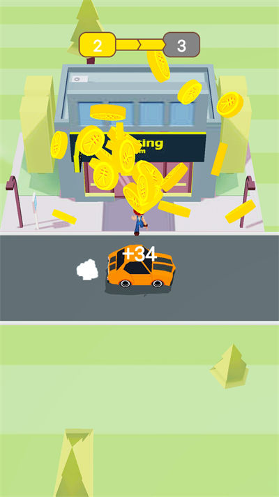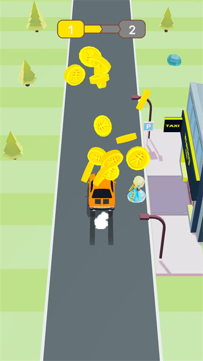 1、卡通的游戏画面风格,这里的场景和出租车也是二次元的绘制形式,看起来非常清爽;
