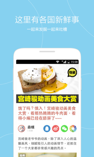 给你一整个世界:不仅有欧美、日韩等国家的新鲜消息,连印度、泰国的搞笑新闻都不放过哟!快告诉你麻麻你是全球性人才!