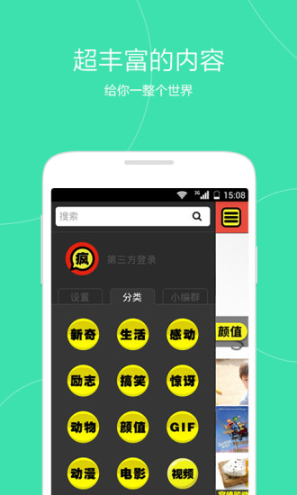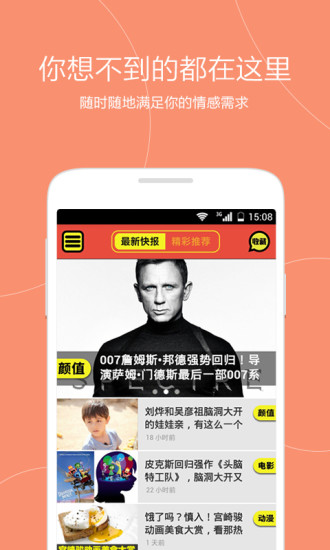 超丰富的内容呈现:怎么看都不腻的帅哥美眉,最新的电影介绍,萌萌哒宠物,想不到的艺术,或搞笑或感动的小故事,更有小视频跟GIF动图哟~你要看的统统满足你!