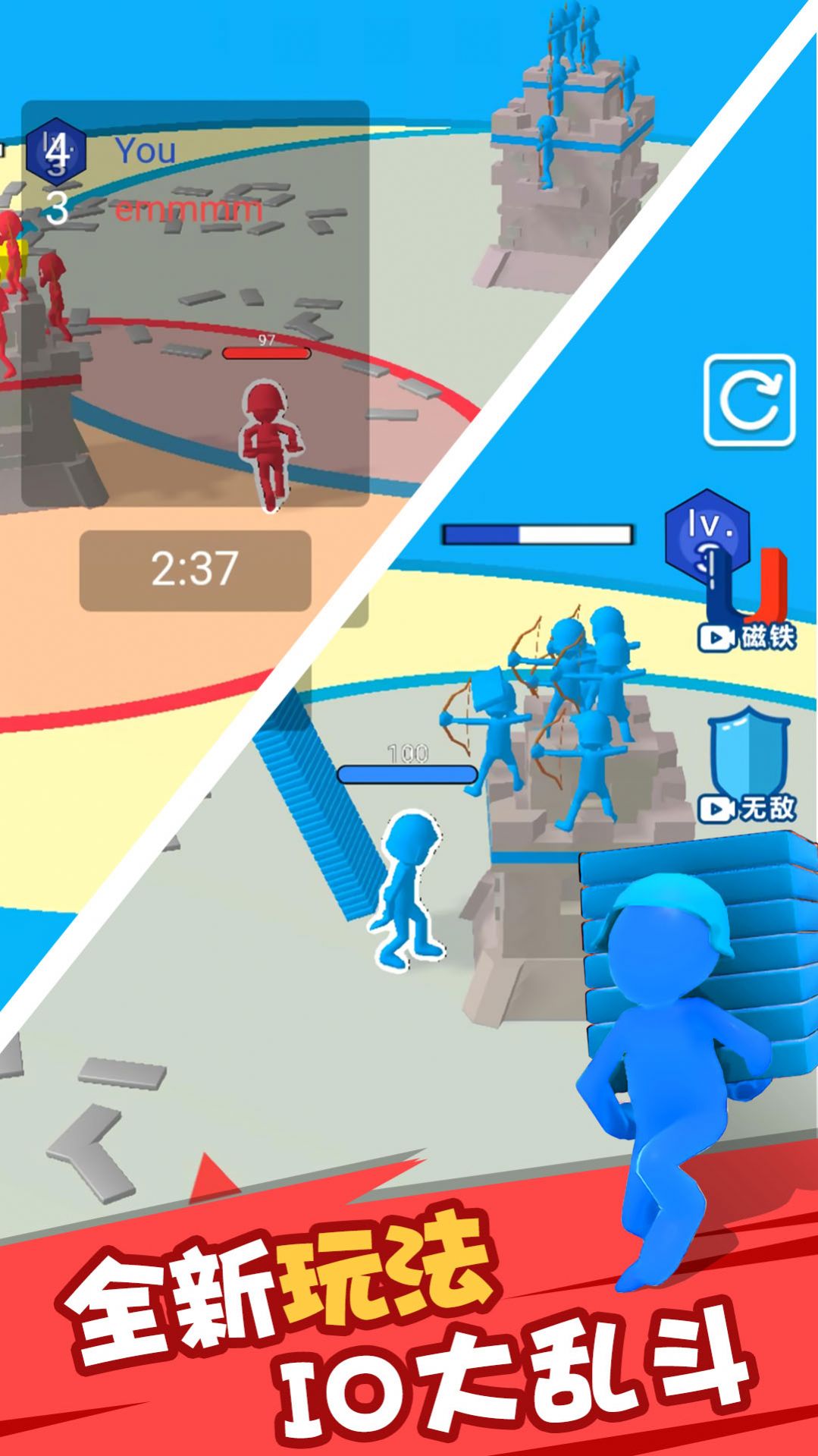 一款很好玩的动作游戏,玩家指挥角色开始建造基地,玩家要在有限的时间里,建造最强大的城堡,将所有的敌人消灭,有很多的道具可以使用,在最关键的时刻使用,给玩家最意想不到的惊喜,成为最厉害的玩家。