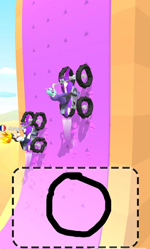 玩家需要绘画出不同的轮胎快速的完成任务,选择不同的赛车,开始与其他玩家一天竞速,更好的就死与全新的关卡,不断的丰富游戏内容,尽情的发挥你的想象力。
