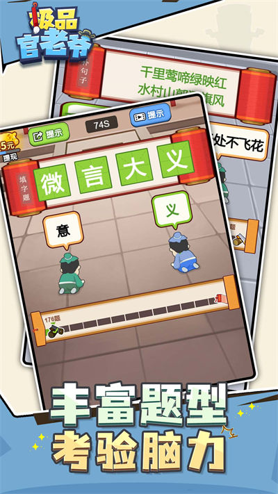 极品官老爷是一款休闲闯关游戏,这里有很多的题型和关卡,玩家可以在这里开动脑筋,益智发展,提升自己的知识储备量。