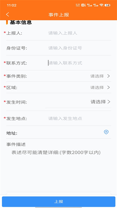 2、支持线上时间上报服务支持,填写基本信息内容给予大家更好的事件管理;