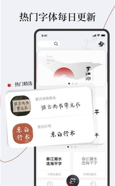 字江湖app是一款可以给予大家获得更多丰富的字体软件,在针对如今手机的字体使用上,单一的字体总是让人们难免看的无趣,所以如今该应用中可以获取到更多的字体选择,带来更好的风格特色。