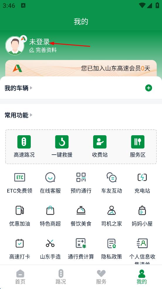 1、打开山东高速智慧出行APP,进入首页后,点击页面右下角“我的”选项。