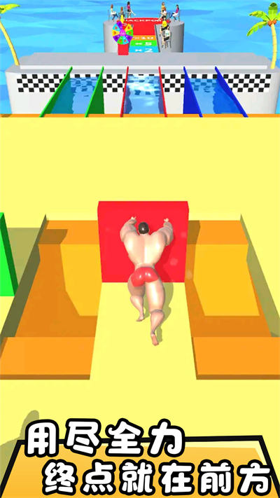 1、魔性搞笑的游戏玩法,玩家在游戏中将会操控一个大力士奔跑,并在这个过程中躲避障碍,收集道具,让自己变得更加强大,从而打败对手;