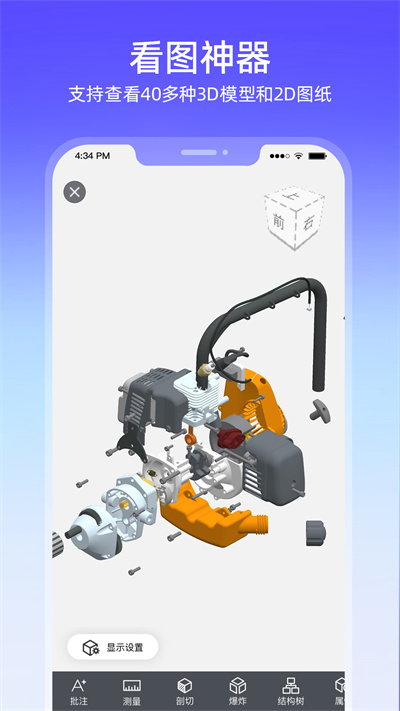 图纸通支持40多种3D模型、CAD图纸的手机在线浏览,可以直接打开查看微信、QQ、钉钉、企业微信中接收到的图纸。支持SolidWorks、Creo、STEP、IGES、STL、DWG等。