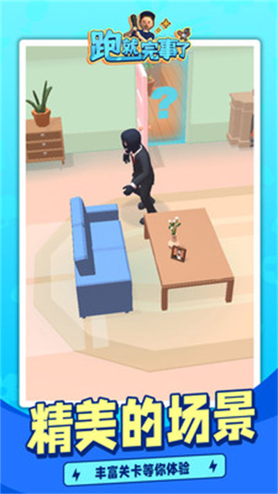 跑就完事了游戏是一款休闲躲猫猫游戏,玩家在游戏中可以扮演一个躲藏的角色,为了逃脱追捕者的抓捕,玩家可以变成房间中的任何物品,并移动到合适的位置,不让追捕者看出端倪,在一定的时间内,玩家如果没有被抓到,则通关成功,要是被发现,则游戏失败。