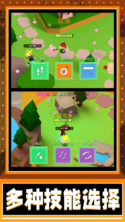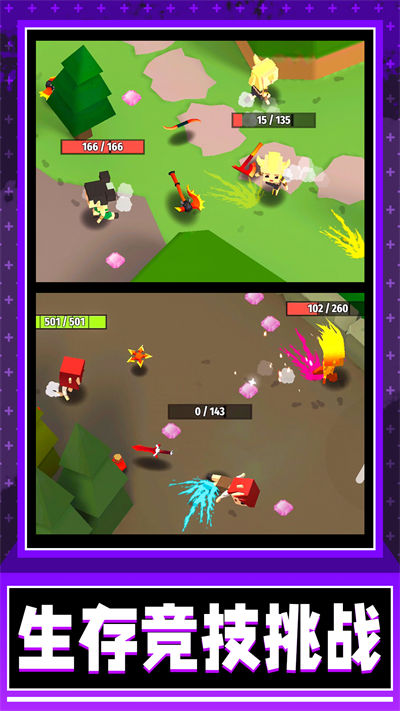 1、精彩刺激的游戏玩法,这里有各式各样的生存挑战,有各种不同的竞技场,还有丰富的技能选择,玩家可以在这里进行一场刺激的冒险之旅;