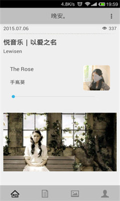 晚安阅读app是一款为你提供优质阅读内容的应用,在你睡觉前是不是还想拿着手机玩一会,如果选择看视频就会完全停不下来,直接变成熬夜一族,但是选择这款app,每晚睡前阅读一些文章、听一些音乐,将会帮助你舒缓心情,更快的入睡,快来下载试一试吧!
