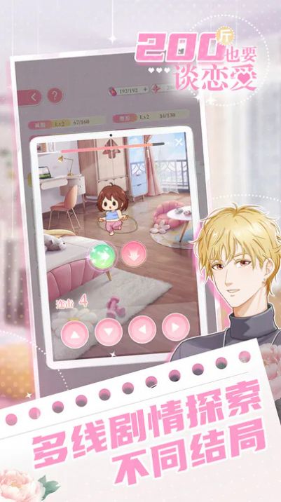 200斤也要谈恋爱游戏是一款沉浸式的互动恋爱游戏,玩家在游戏中扮演一个小有名气的悬疑作家,在冒险的路途中,遭遇欺骗,背叛,建造,需要玩家做出选择,如果阻碍的对手形象,进行的进行开始改变。没查到减肥·之路,在过程中与三位男主角控制一段进行的廖爱故事,全新的养成感受体验,各种剧情探索扮演的结局,恋爱、事业和健康养成,精美的游戏画面,地图甜蜜的互动,超多精彩内容等你体验。