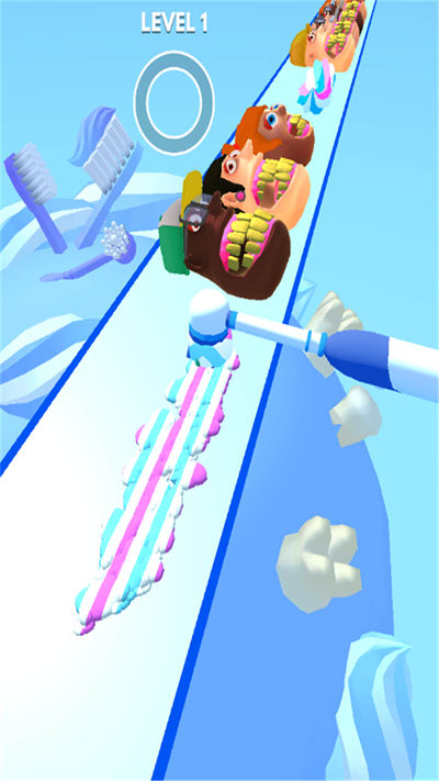1、轻松休闲的游戏玩法,游戏的模式很独特,玩家需要在一边跑酷的过程中,一边给不同的牙齿做好清洁工作;