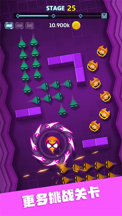 1、熟悉游戏的操作,玩家在游戏中通过操控飞刀完成一系列的任务,提高自己的操作技巧可以更快更好的攻击敌人;