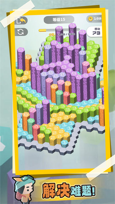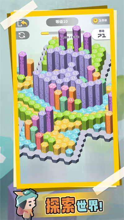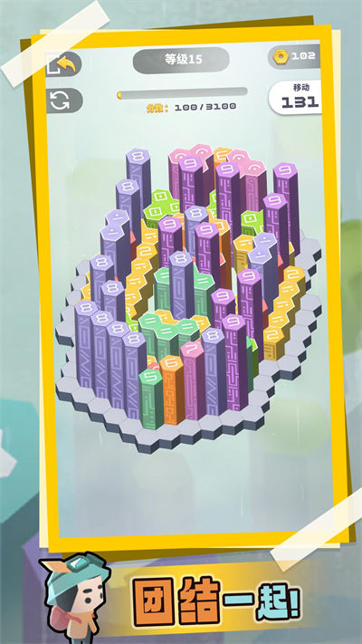 1、注意不同条柱上的数字,玩家需要将三个或以上数字相同的条柱进行连接才可以消除;