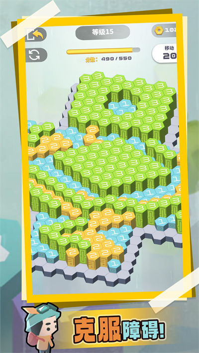1、立体风格的游戏画面,游戏中的场景和条柱都是立体的形式,配色清新自然,没有复杂的花纹,久玩也不伤眼;