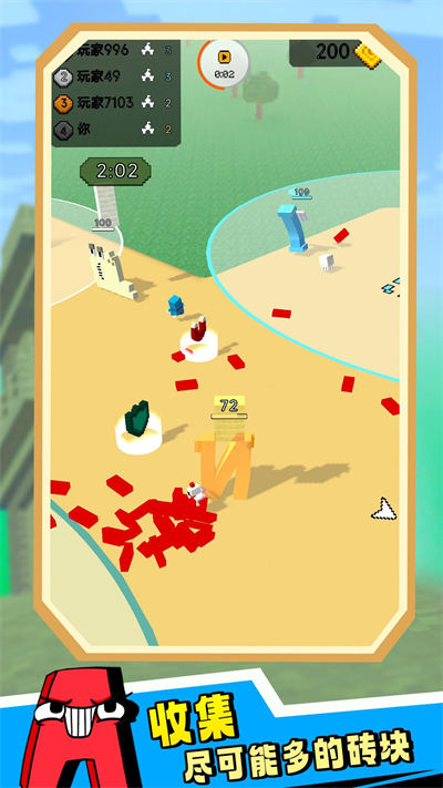 1、收集足够的砖块,玩家在游戏中需要使用砖块来打造建筑,需要很多数量的砖块,或者玩家也可以和其他的对手进行抢夺;