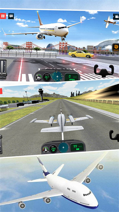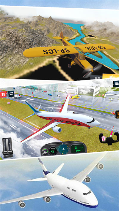 模拟真实飞机飞行是一款逼真的飞机模拟驾驶游戏,玩家不需要任何技能,也不需要有飞行技术,简单的虚拟操纵杆控制,每个人都可以上手。