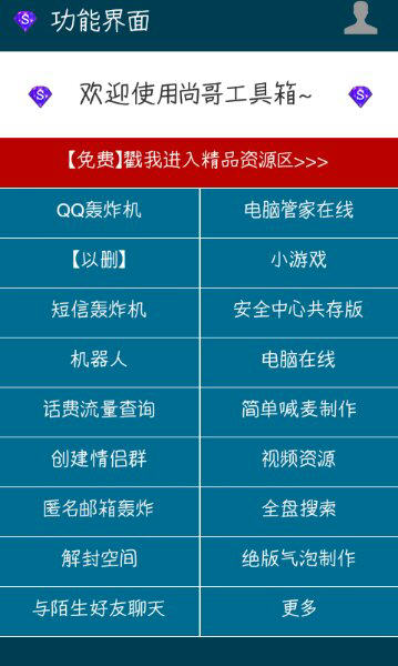 尚哥工具箱是来自葫芦侠论坛分享的一款手机工具箱应用,提供李机器人、轰炸机、视频资源等好玩的工具和一些资源,而且不占内存,完全免费,是一款相当实用的app,欢迎下载使用。