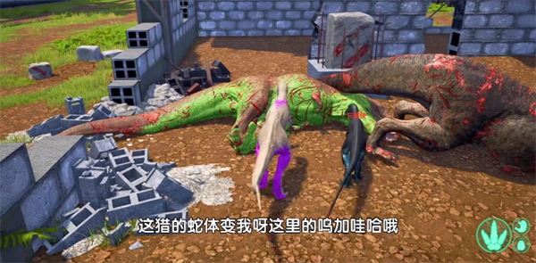 4、还可以和一些体积较大的恐龙进行战斗,以看看自己的总体实力如何。