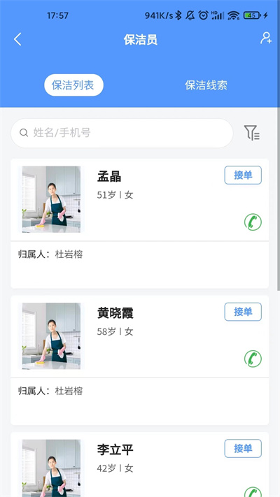 1、平台支持快速查询保洁人员信息,随时可以联系到保洁人员;