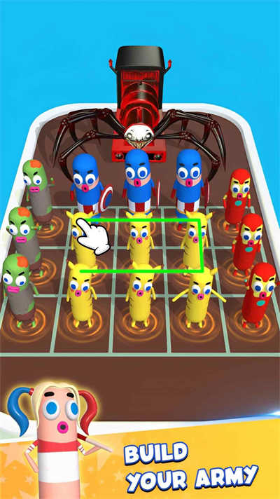 玩家在观察和试错在这里非常重要,尝试不同的方法,享受思考的过程,帮助橡胶人逃脱,进入决战环节,需要使用香肠搭配更强大的战斗阵容,随着游戏的发展,玩家将能够解锁更多的游戏冒险关卡。