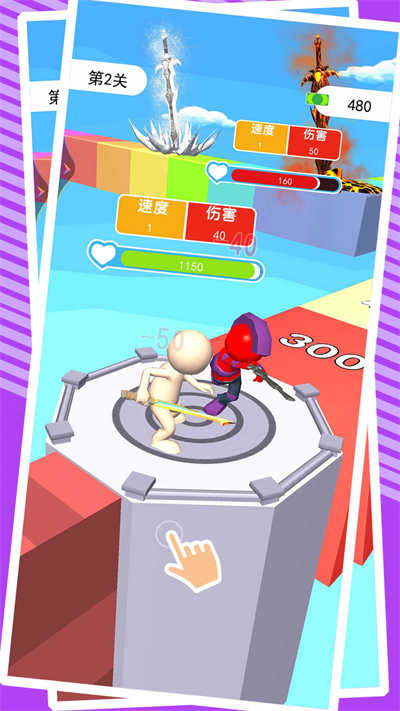 游戏里你可以用大量的飞剑轻松对抗对手,过程中遇到的障碍会使剑变短,需要避免,到达终点后,玩家拿起剑,击败敌人并获胜,整个游戏玩起来不用担心,越稳定成功的概率越高。