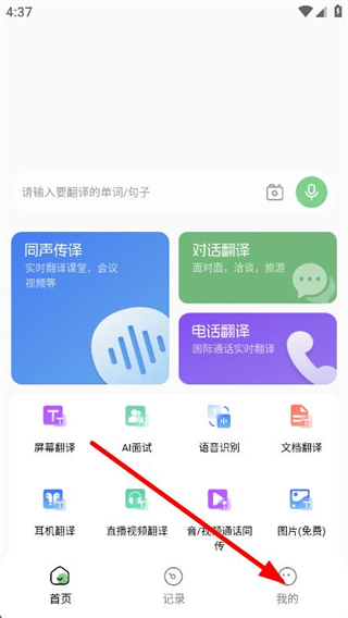 1、打开译妙蛙翻译官app,点击底部导航栏的我的。