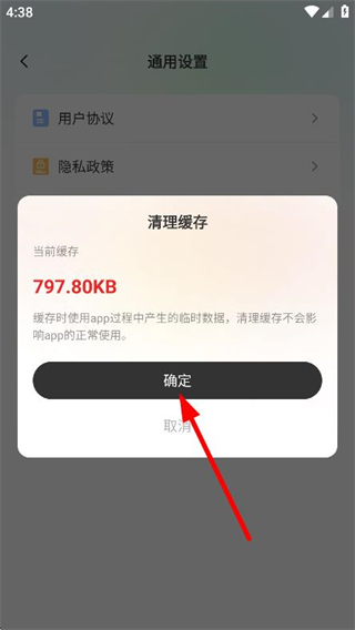 4、在弹窗中,点击确定按钮即可完成缓存的清理。
