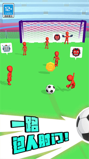 疯狂足球官方正版手机版是一款有趣的足球休闲游戏,玩家需要凭借自己的足球技能,获取参加世界锦标赛的资格,同时游戏中获取的金币,可以用来兑换各种各样的皮肤,还能兑换一些宝箱,宝箱内会有一些特别的道具,快来赢下这场比赛吧!