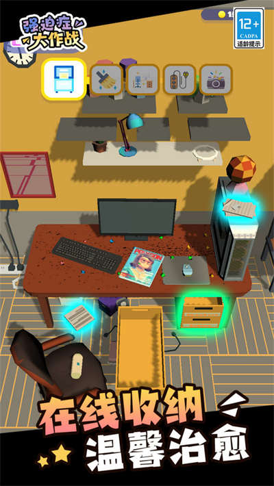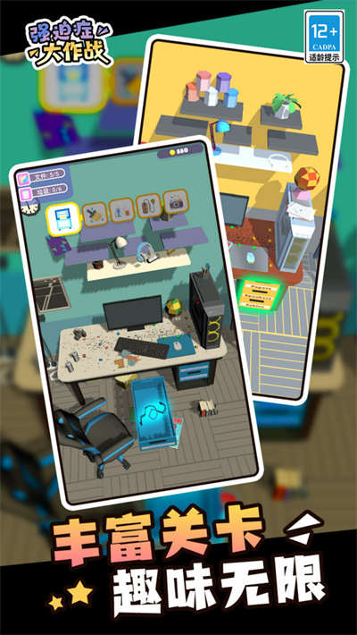 强迫症大作战是一款休闲的游戏,玩家需要把杂乱差的房间给整理完成,让房间可以焕然一新,游玩之后是非常的解压的,玩家完成不同的任务,获得大量的奖励,开始新的关卡进行挑战,快来尝试下。